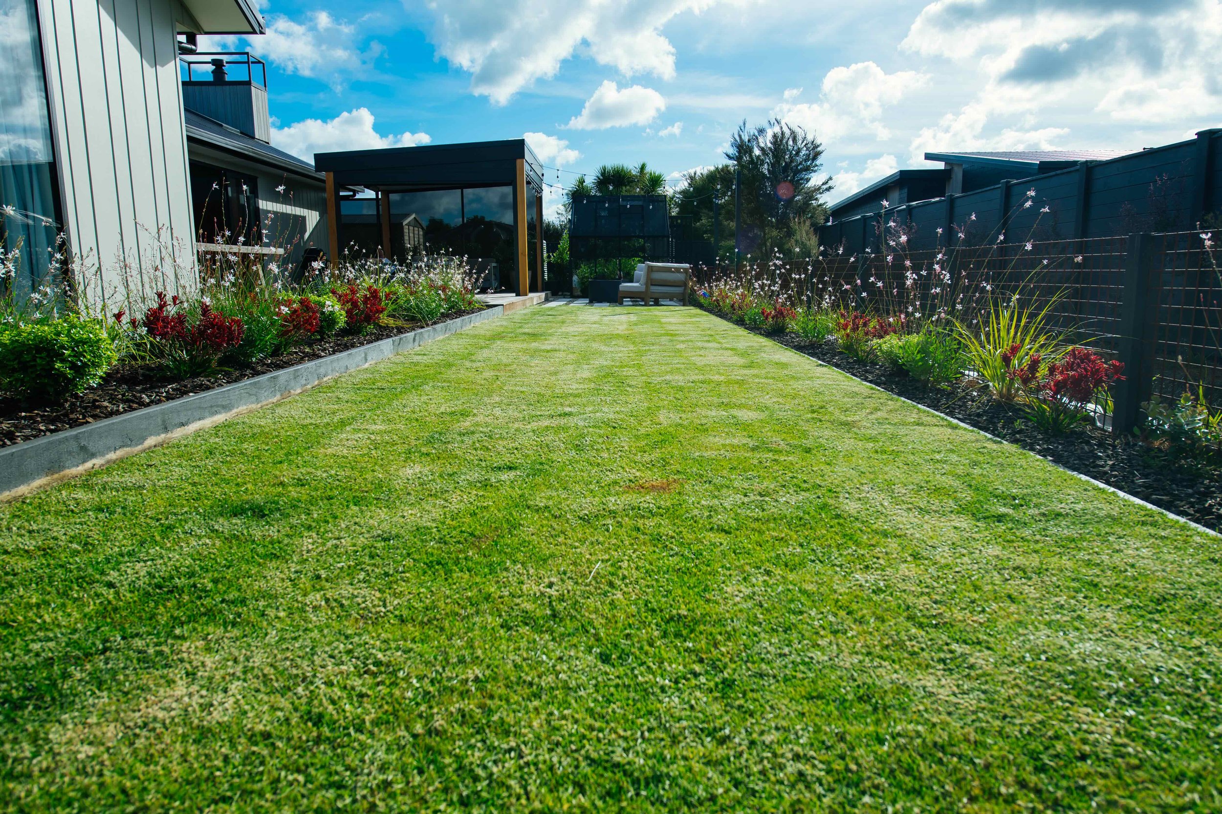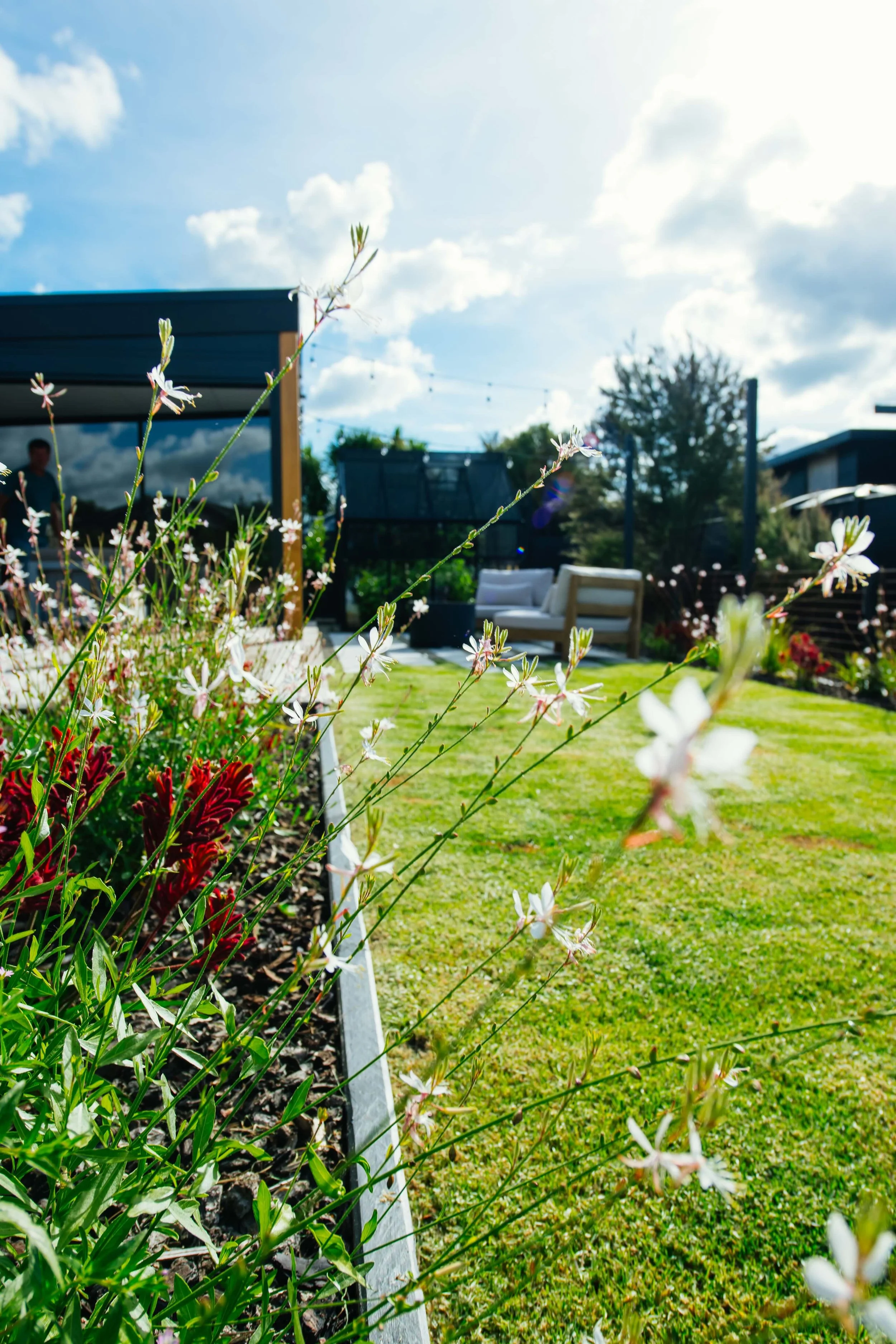 This new build in Mangawhai Village called for a landscape that complemented its sleek, modern architecture. Clad in warm Abodo timber, the garden design mirrors the strong lines of the house while maintaining a natural, inviting feel.